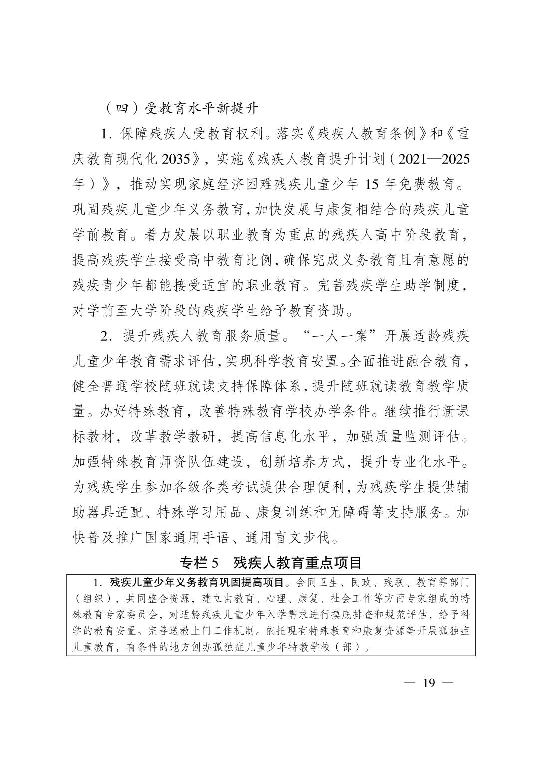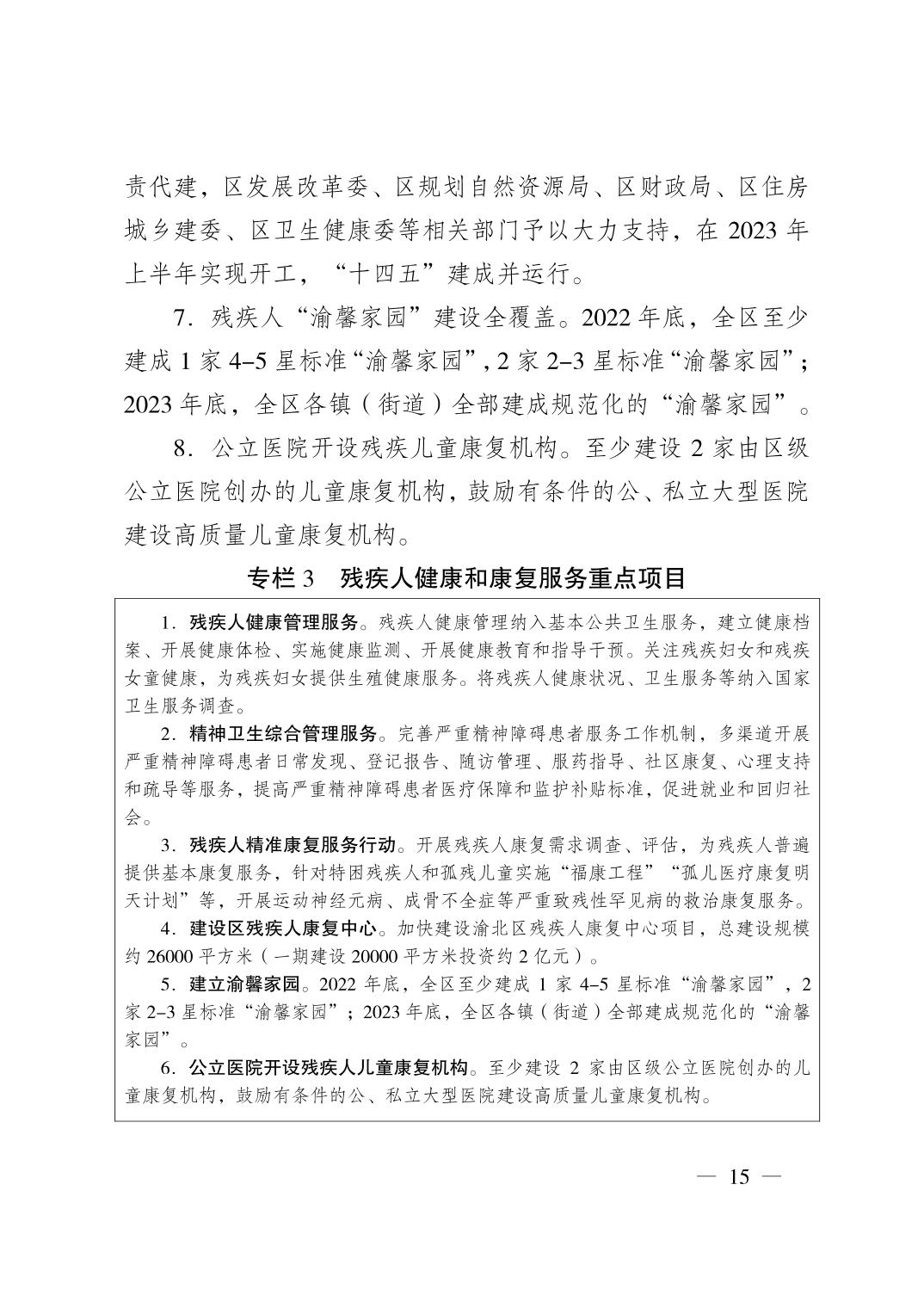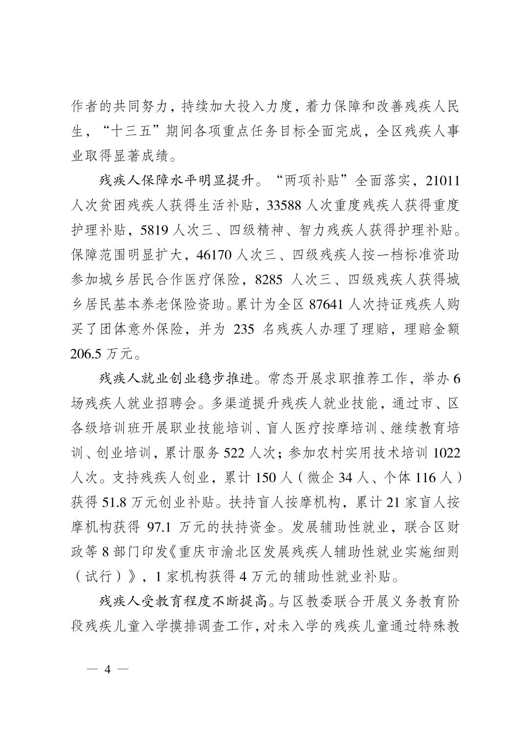 关于印发《重庆市渝北区“十四五”残疾人保障和发展规划(2021—2025年)》