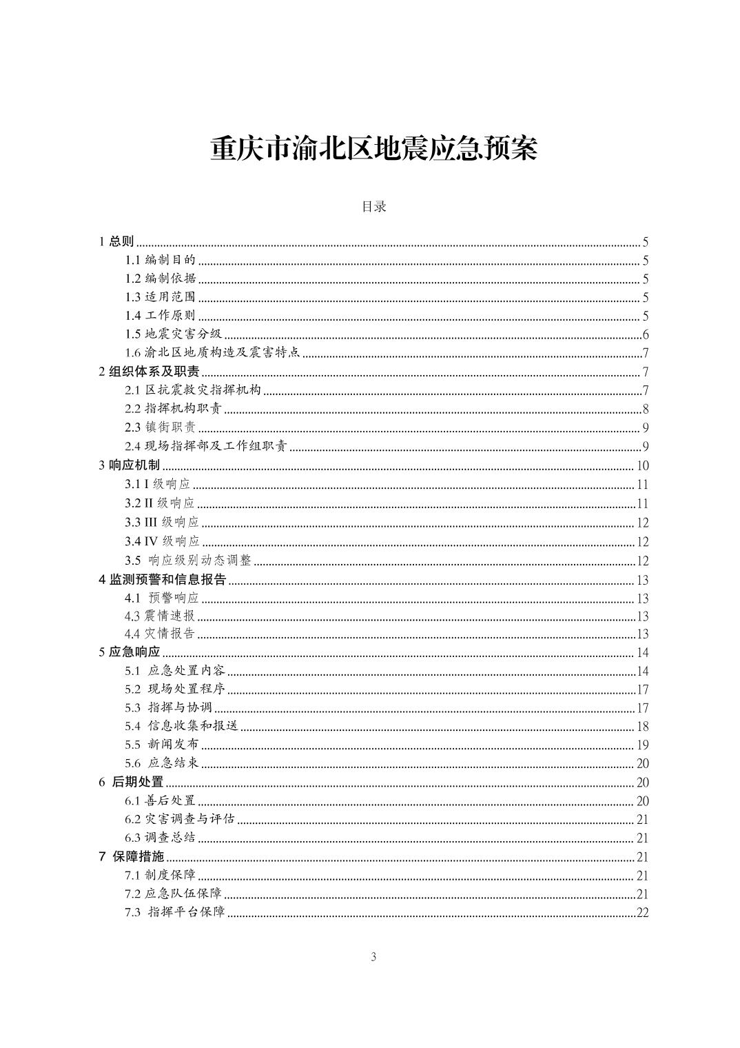 按照区政府工作要求,现将修订后的《重庆市渝北区地震应急预案》印发你们,请认真贯彻执行。