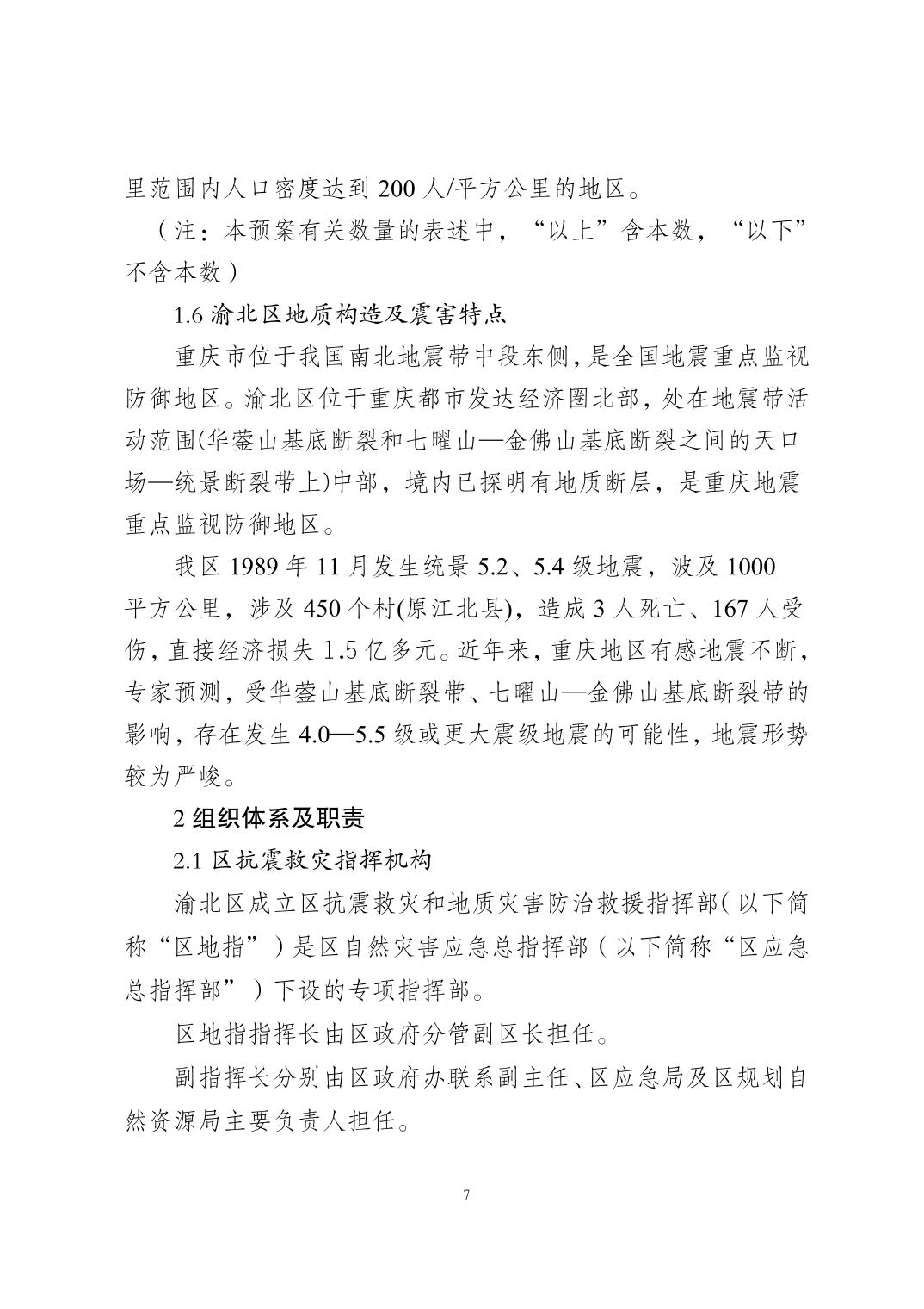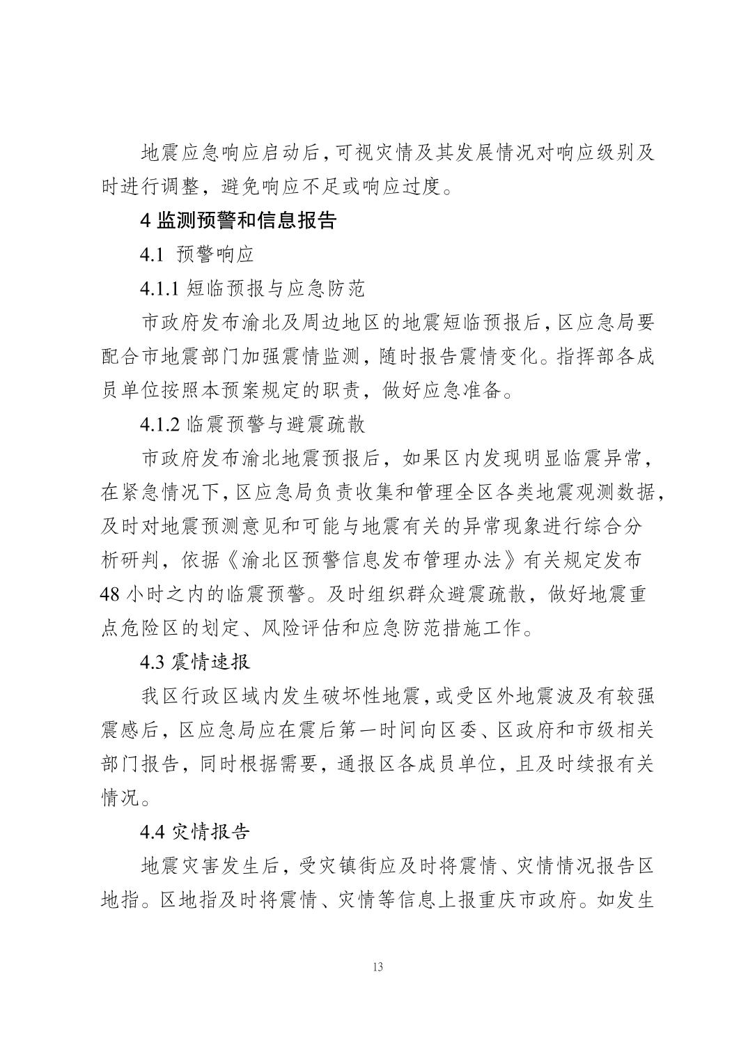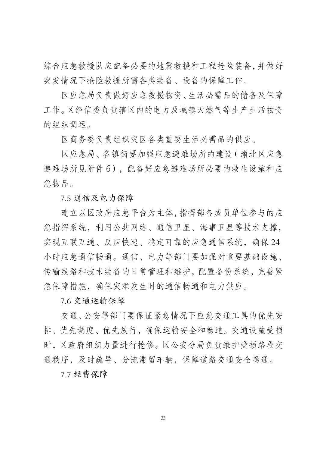万博手机版网页版 关于印发重庆市渝北区地震应急预案的通知
