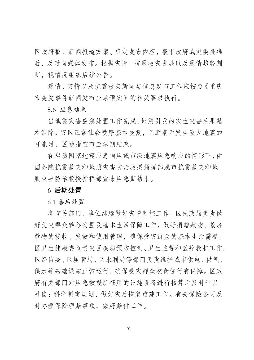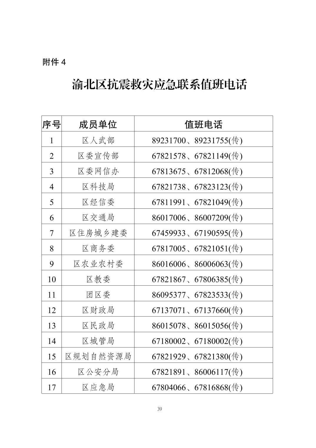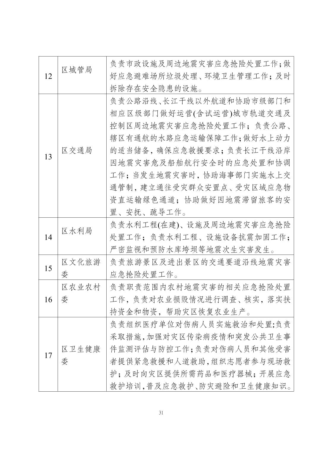 万博手机版网页版 关于印发重庆市渝北区地震应急预案的通知